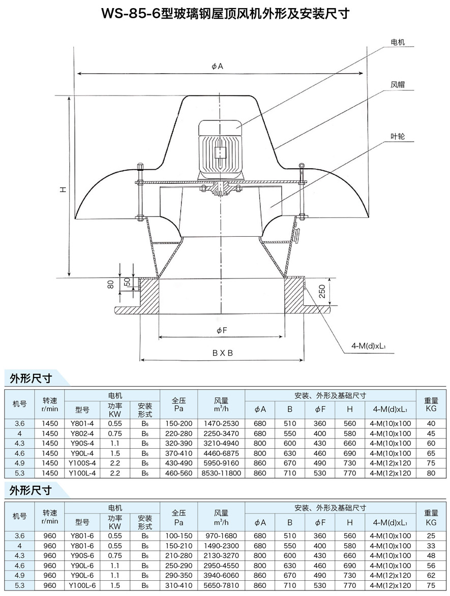 WS-85-6型玻璃鋼屋頂風(fēng)機(jī)